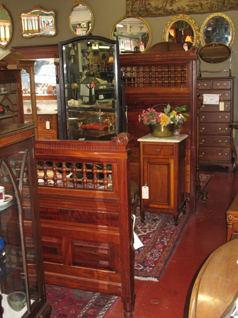 Of particular interest in this section of Main Street is Secondtime Around Antiques (4428 Main). In their 30th year of business on Main Street, the owners Mark and Tracey Porter buy mostly from Belgium and France and in lesser amounts from Austria and Germany. They do carry English antiques but buy them locally and selectively. With over 8000 square feet of showroom space, they offer a wide variety of styles such as Victorian, Art Nouveau, Arts and Crafts, Edwardian, Art Deco, Louis X1V, Louis XV, Federal styles including Hepplewhite and Duncan Phyfe, as well as Country French and Canadiana.