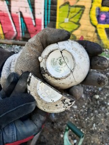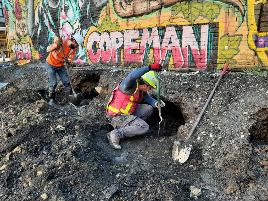 They approach each site with caution and respect. “We dig in a manner so that it doesn’t look like we were ever here,” says Laub who also mentions that they will fill up every hole before they leave. After a quick visual scan, and trusting their instincts, they each chose to begin digging near the property’s edge, next an older graffiti-covered building.