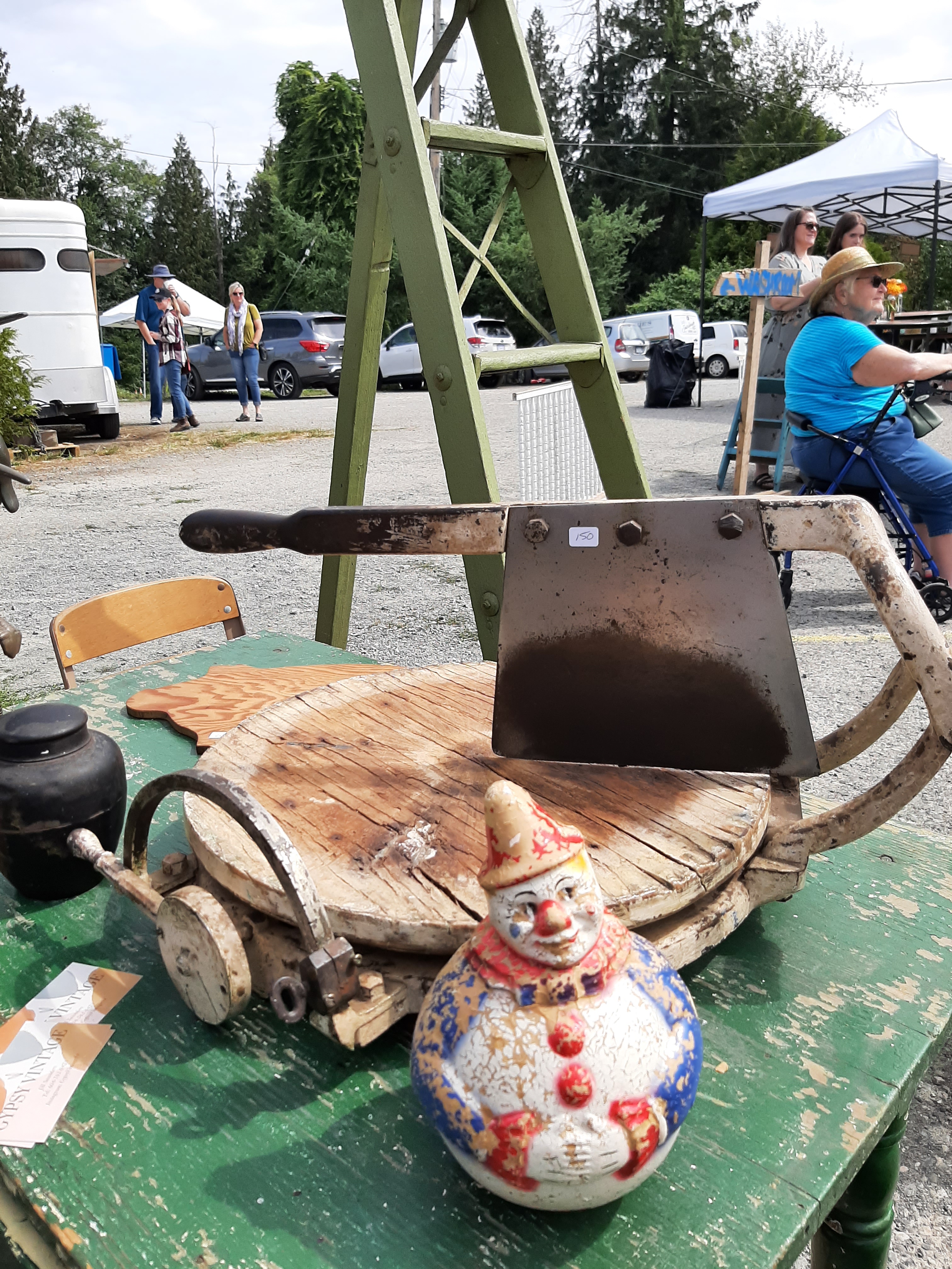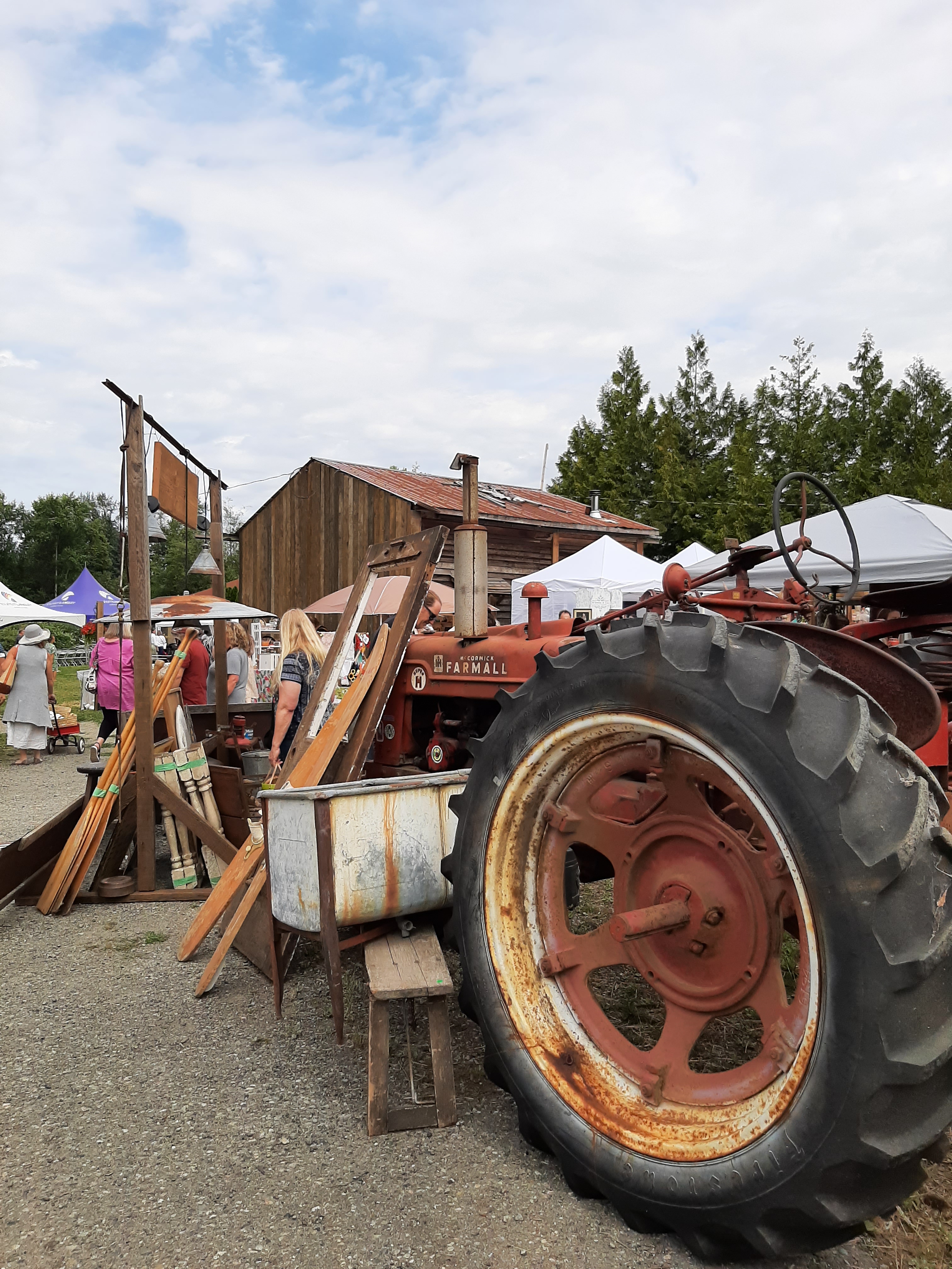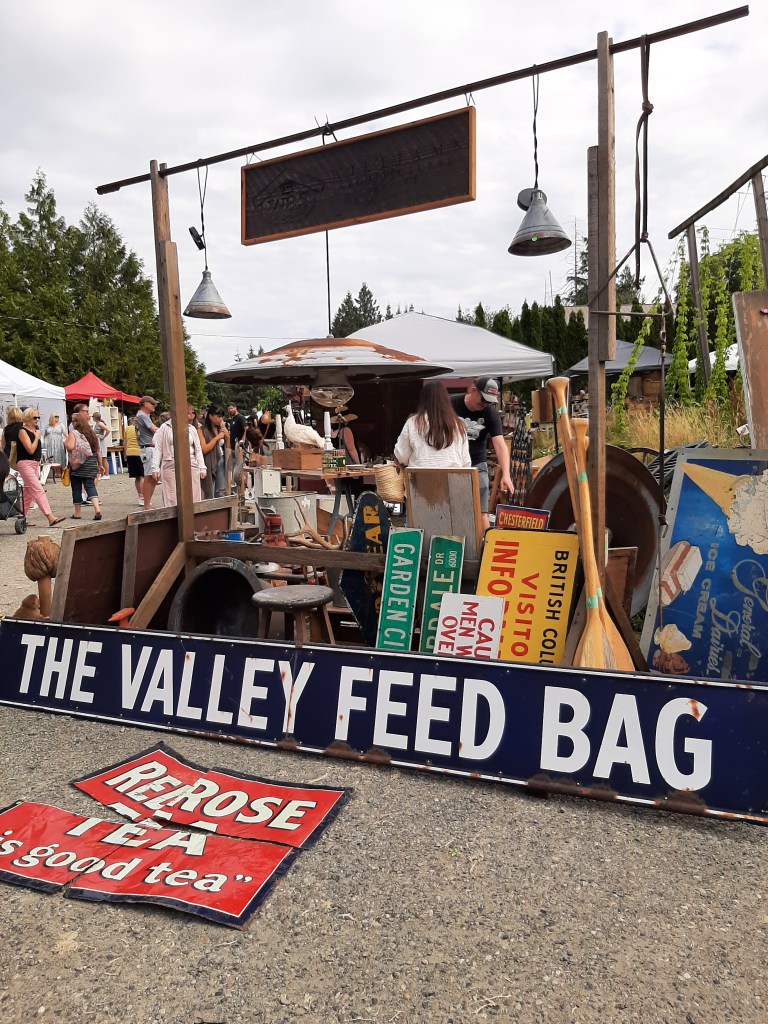 Just over an hour outside of Vancouver, near Langley British Columbia (BC), set amongst idyllic country roads and lush farmlands, the Vintage Pasture Sale is in full swing. Located on the historic MacInnes family farm, this outdoor summer market attracts vendors and shoppers from all across Metro Vancouver and the Fraser Valley. Volunteers wearing high visibility vests are directing traffic from the main road while others help people find free parking in one of the many makeshift lots onsite. And a few other volunteers, driving golf carts, are offering rides for those in need to the main entrance.